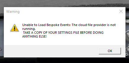 I am trying to install my MCP Pro and EFIS on a new PC With new installation of windows 10 and FSX (from DVD). I have installed GF Config Setup 2_28_0 and GoFlight Interface Tool 3_6_5_1following the installation guide on this site. When I first start up FSX with the default flight, the MCP windows show dashes. When I load a saved flight cold and dark I get the following error message: Unable to load bespoke events. The cloud file provider is not running. TAKE A COPY OF YOUR SETTINGS BEFORE DOING ANYTHING ELSE. The MCP in this situation shows nothing on the displays and does not do anything.