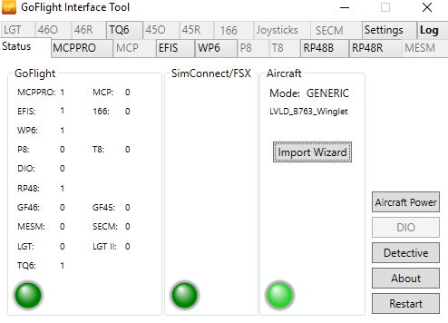 I just bought the Level-D 767 as i've read that it's compatible with the MCPRO automatically, however this doesn't seem to be the case. In the Go Flight Config i've changed the 'mode of operation' to Level D Simulations, yet the autopilot doesn't work. On GIT, all lights show green, however on the Aircraft it simply says "Generic", and under it saying "LVLD_B763_Winglet", i've attached a photo.