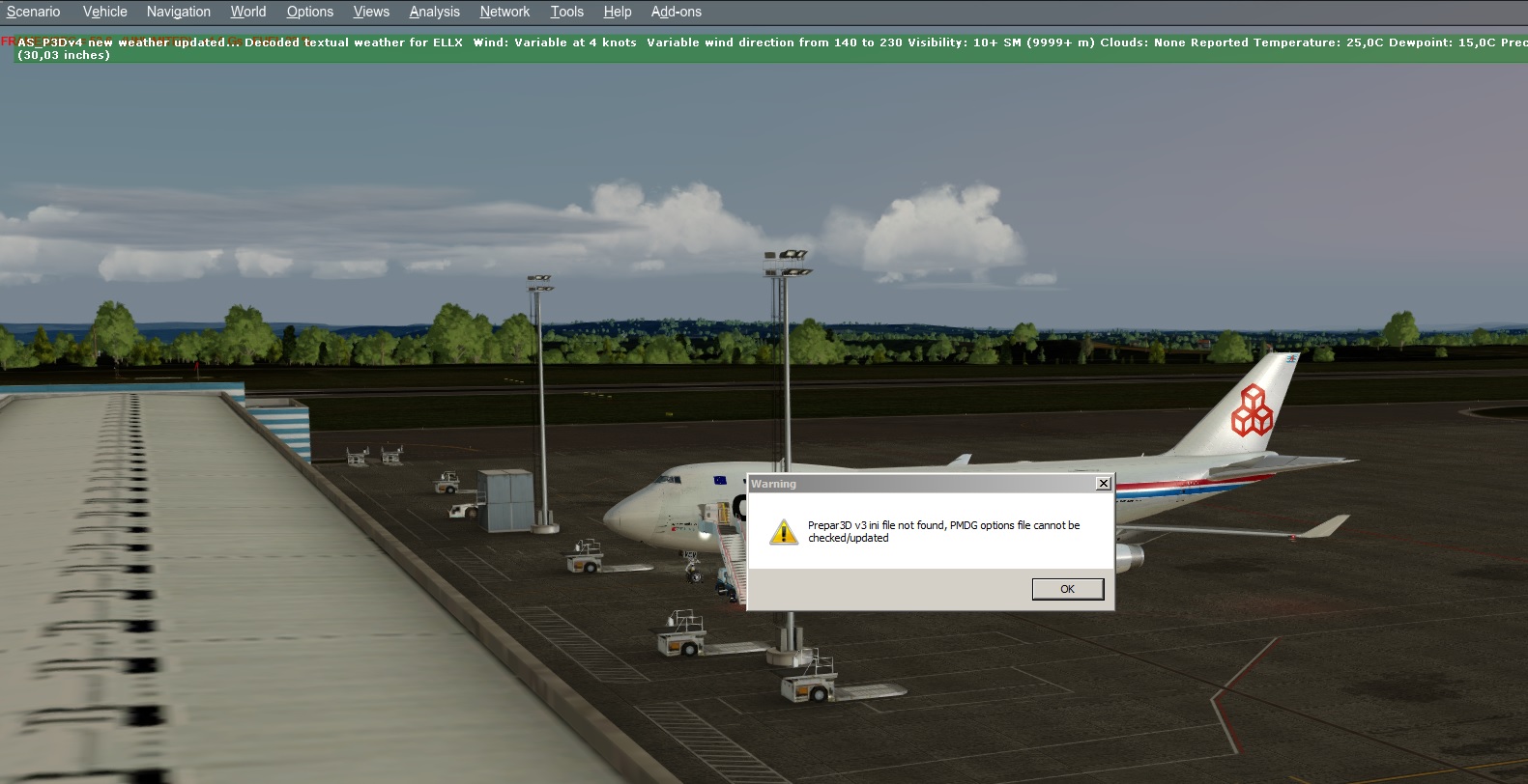 When aircraft is becoming active, I receive the message that the Prepare 3D v3 ini file isn't found. But I don't have that version anymore on my pc. Only v4 is installed. CDU screen was remaining black , but buttons were working. After including manually the text items mentioned in the FAQ into the SDK, everything is working ok now, but that error message is coming up every time the aircraft is becoming active.