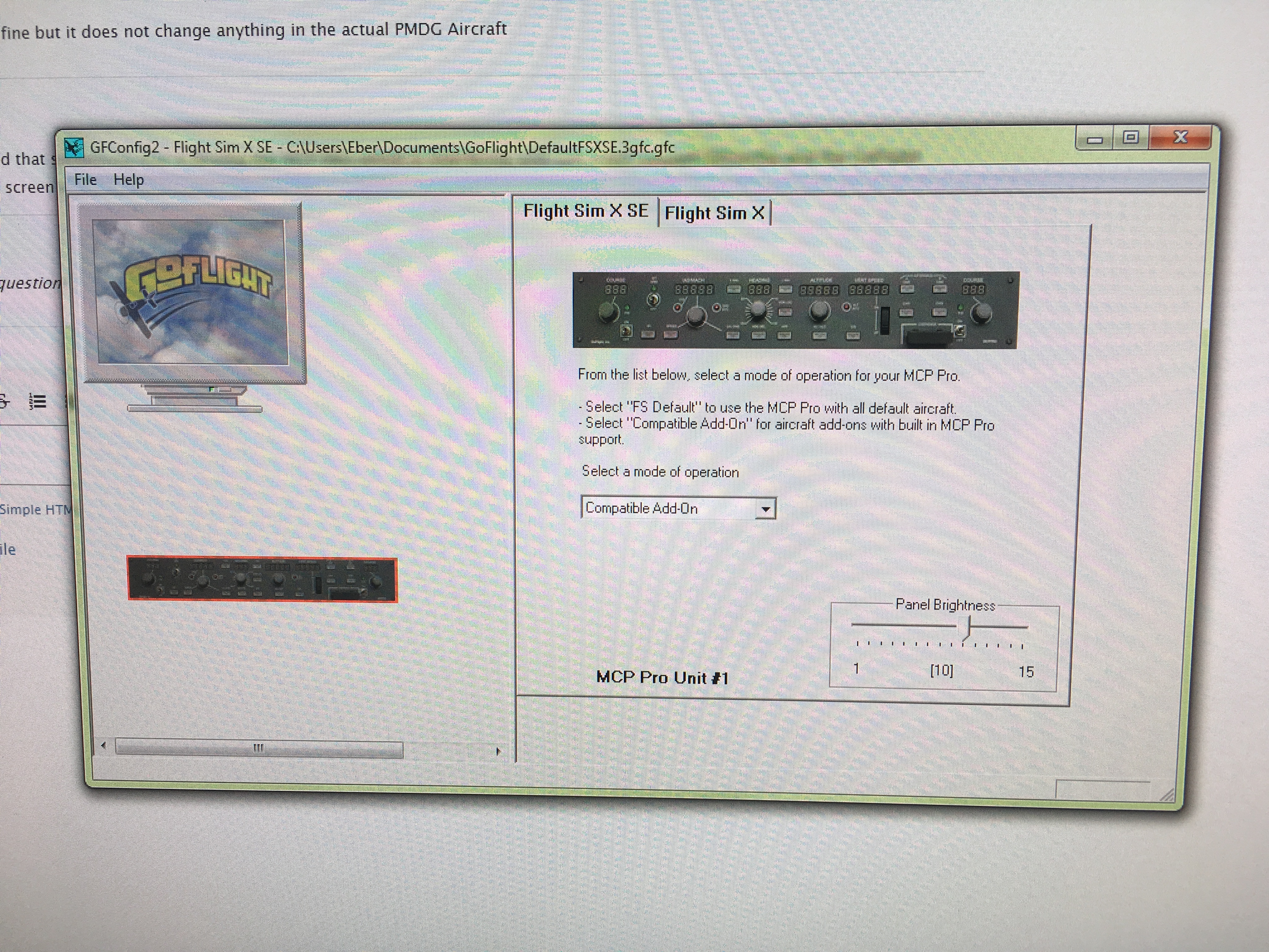 Also make sure you are running the correct version of GIT for your specific flight simulator and you have set the MCP PRO to compatible add-on in the correct flight sim tab of GFConfig.