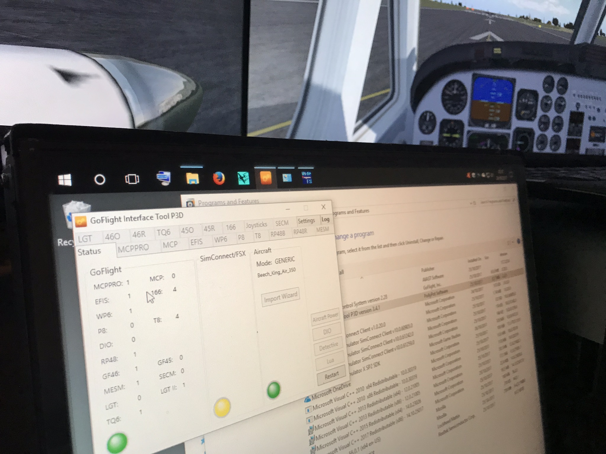 PC-2 = Windows 7 32bit (Simconnect rig with GF Hardware plugged into this)- WideFS7, Active Sky P4 for P3Dv4, GFConfig 2.28, Loads of GoFlight kit inc MCP Pro, Efis, TQ6, 4 switch panels, Radio stack etc.