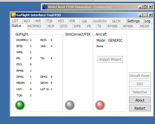 So I'm trying to work out why GIT is not working, because its not letting my configure any GoFlight kit, nor use any of my GoFlight kit with the Bonanza?